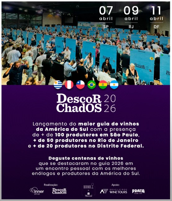 A degustação de Lançamento do Guia Descorchados 2026 acontecerá no mês de Abril em São Paulo. Rio de Janeiro e pela primeira vez em Brasília. Uma excelente oportunidade única para conhecer os principais destaques e conversar com produtores, enólogos e importadores.